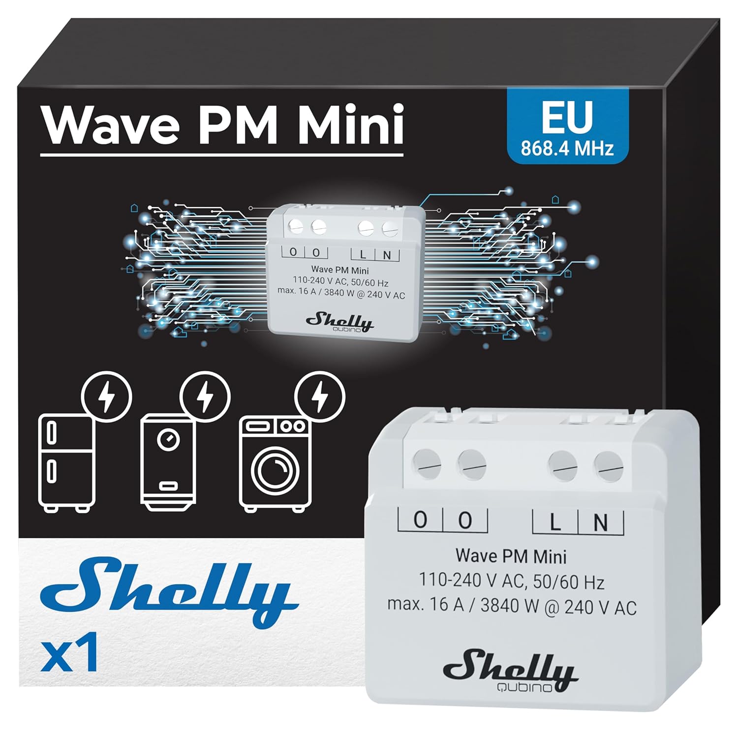 Découvrez le **Shelly Wave PM Mini 16A**, un compteur électrique ultra-compact (29x34x16 mm) idéal pour surveiller votre consommation d’énergie. Ce petit bijou est conçu pour s’intégrer parfaitement dans votre réseau Z-Wave (868,4 MHz), offrant une compatibilité exceptionnelle avec la plupart des passerelles Z-Wave certifiées.
